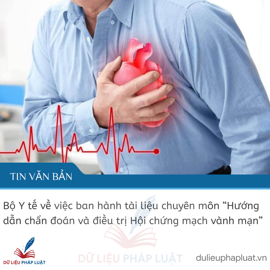 Ngày 19 tháng 05 năm 2023, Bộ Y tế đã ban hành Quyết định 2248/QĐ-BYT năm 2023 của Bộ Y tế về việc ban hành tài liệu chuyên môn “Hướng dẫn chẩn đoán và điều trị Hội chứng mạch vành mạn”.